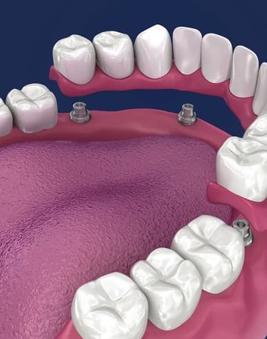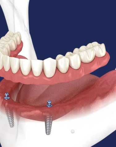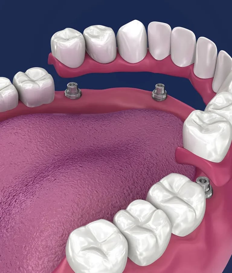 Per l'arcata inferiore, si possono posizionare due soli impianti e creare una protesi rimovibile ancorata con attacchi a "pallina", , permettendo al paziente di rimuoverla per l'igiene.