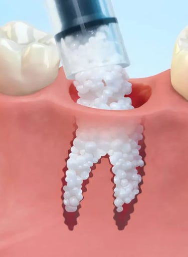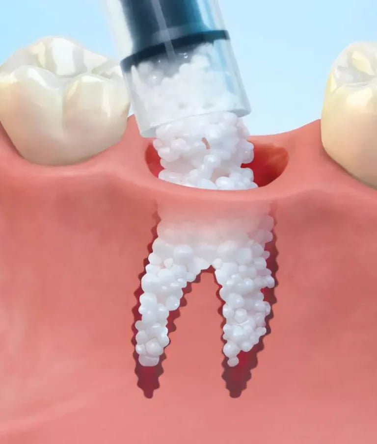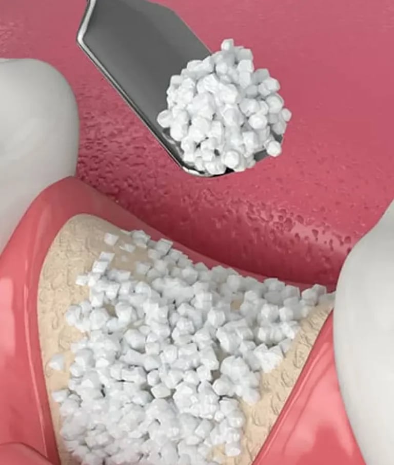 Al momento dell’estrazione, il chirurgo introduce materiali di diversa natura nell’alveolo post-estrattivo per mantenere il volume osseo.